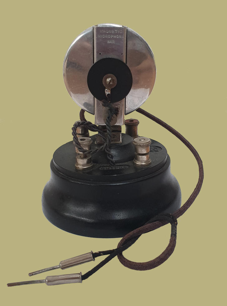 The rod is connected to a carbon microphone that is