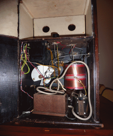 ingebouwd in een mahoniehouten kast met twee deurtjes en