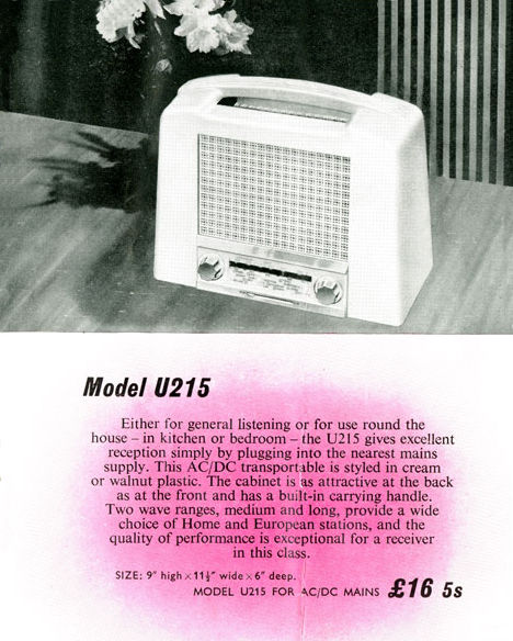 designed to operate from AC or DC. "Toaster" shaped ivory coloured cabinet