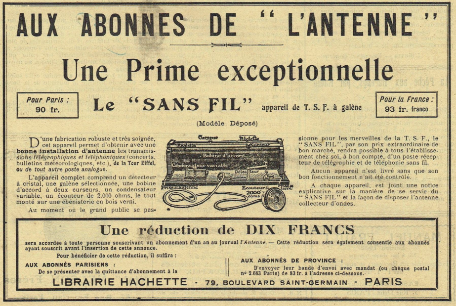 crystal detector. The receiver needs an antenna
