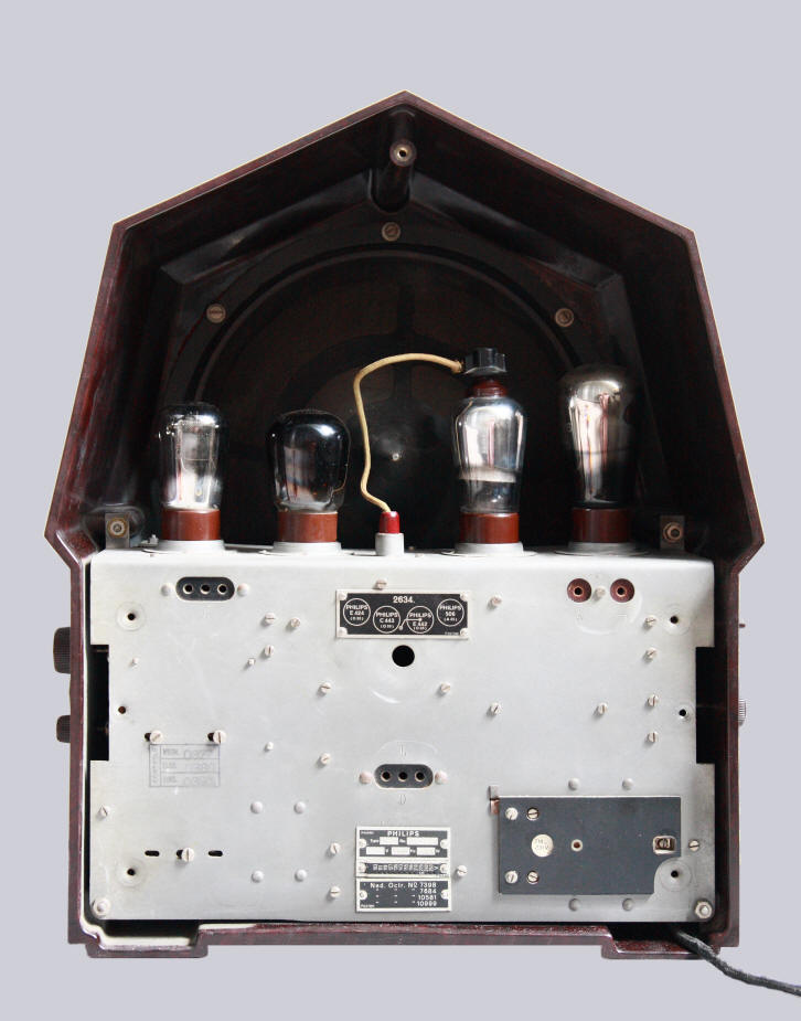 chassis. De radio, naar een ontwerp van ir. Louis Kalff, is een fraai voorbeeld van Art Deco vormgeving. De 2634 was de eerste Philips radio waarbij
