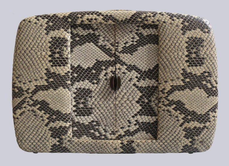 meter). Houten kast, bekleed met imitatie slangenleer (de donkere