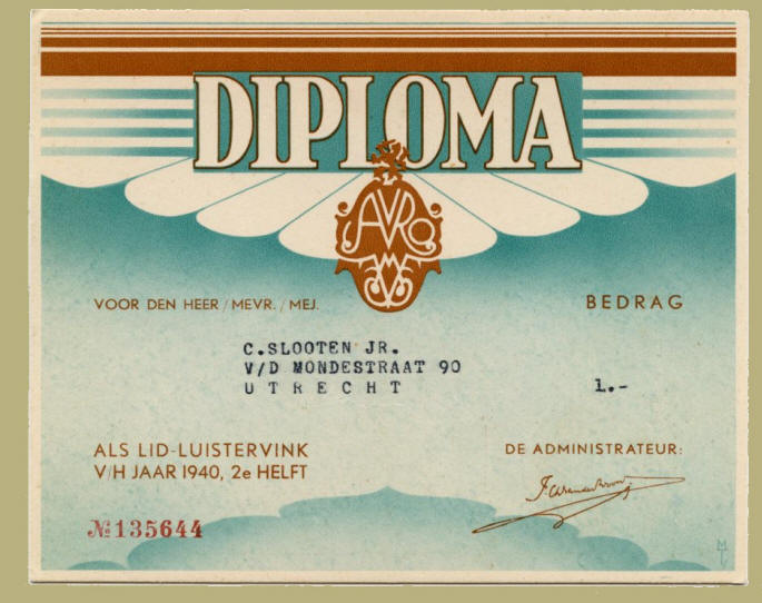 organisation AVRO for the 2nd half of 1940, with envelope |