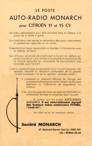 Sold a car radio for the Citroën models 11 and 15 in the