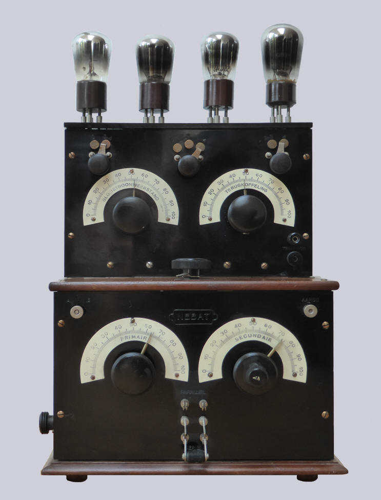 helft: golflengteschakelaar. Onderste helft: antenne-aansluiting, primaire