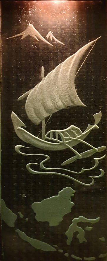Indian prahu, and a map of the East-Indian Archipelago.These glass